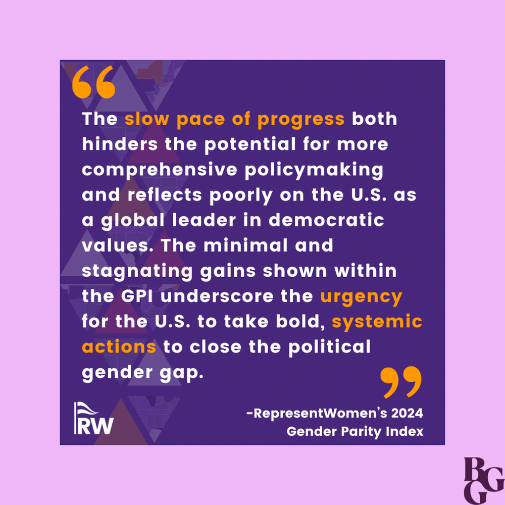 RepresentWomen announces their 2024 Gender Parity Index. In August 2013, RepresentWomen launched the Gender Parity Index (GPI) to track progress toward gender-balanced governance and identify opportunities to increase women’s political representation in the U.S. Each year, we assign all 50 states a Gender Parity Score, letter grade, and ranking based on their proximity to gender […]